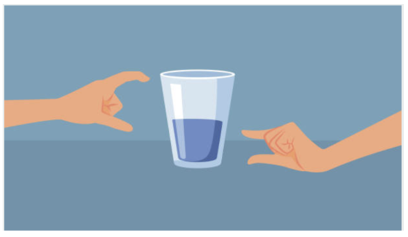 Se acercó a su mesa y levantó un vaso de agua medio lleno, dispuesta a hacer una pregunta al grupo. Todos pensaron que preguntaría “¿Está medio lleno, o medio vacío?”. Sin embargo, su pregunta fue otra: “¿Cuánto pesa este vaso de agua?”.