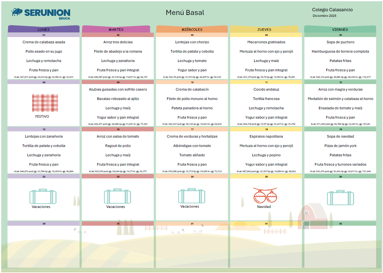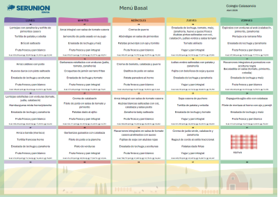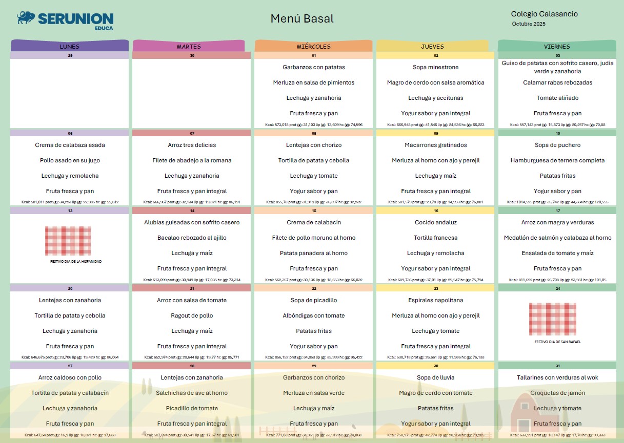 Menú del comedor escolar En el colegio apostamos por un comedor en el que nos sintamos como en casa, con cocina propia y productos de primera calidad. Nuestros menús Aquí os dejamos los menús mensuales para su visualización: